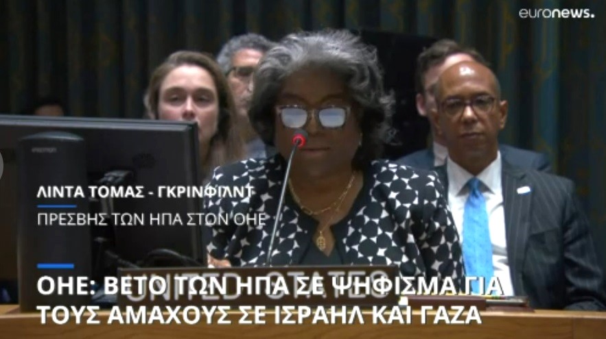 Οι Ηνωμένες Πολιτείες άσκησαν βέτο σε ψήφισμα του ΟΗΕ την Τετάρτη που θα καταδίκαζε τη βία κατά όλων των αμάχων στον πόλεμο Ισραήλ-Χαμάς, συμπεριλαμβανομένων των «ειδεχθών τρομοκρατικών επιθέσεων της Χαμάς» εναντίον του Ισραήλ, και θα προέτρεπε για ανθρωπιστική βοήθεια στους Παλαιστίνιους στη Γάζα.