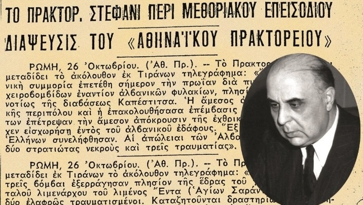Στις 26 Οκτωβρίου το ιταλικό πρακτορείο Στέφανι μεταδίδει ότι ένοπλη ελληνική συμμορία επιτέθηκε με πυροβολισμούς και χειροβομβίδες εναντίον αλβανικών φυλακίων πλησίον της Κορυτσάς. Είναι η τελευταία πράξη του προβοκατόρικου σχεδίου του Ιταλού τοποτηρητή στην Αλβανία, προκειμένου να προκαλέσει την εισβολή στην Ελλάδα. Το προηγούμενο βράδυ, σύμφωνα με όσα μετέδιδε το πρακτορείο, είχε γίνει έκρηξη τριών βομβών κοντά στο γραφείο του Ιταλού λιμενάρχη στους Αγίους Σαράντα και οι αρχές αναζητούσαν τους «Έλληνες ή Βρετανούς πράκτορες που τις έβαλαν». Αυτό για τους Ιταλούς θα ήταν αφορμή πολέμου. Το Αθηναϊκό Πρακτορείο Ειδήσεων διαψεύδει κατηγορηματικά και τις δύο ειδήσεις με εντολή του Μεταξά. Οι πληροφορίες του Αθηναϊκού Πρακτορείου είναι «εξ αρμοδίων πηγών», όπως θα λέγαμε σήμερα… «σύμφωνα με κυβερνητικές πηγές».