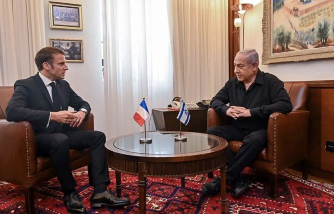 Ο Μακρόν στην κοινή συνέντευξη Τύπου με τον Ισραηλινό πρωθυπουργό Μπενιαμίν Νετανιάχου κάλεσε τη Χεζμπολάχ και το Ιράν να ενεργήσουν υπεύθυνα και ανακοίνωσε ότι πρότεινε στον συνασπισμό που μάχεται κατά του ISIS να πολεμήσει και κατά της Χαμάς.