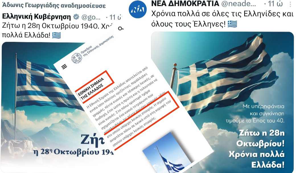 Κυβέρνηση και Ν.Δ ανέβασαν σήμερα την επέτειο του ΟΧΙ φωτογραφίες με λάθος σημαία (χωρίς σταυρό στον ιστό)
