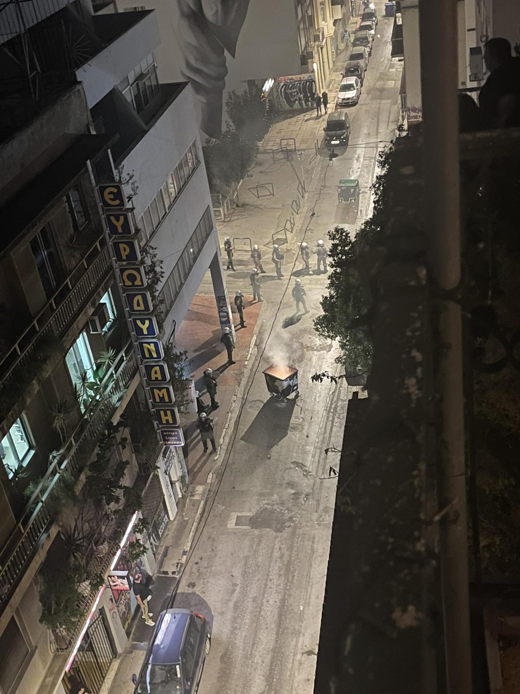 Οι διαμαρτυρόμενοι εκτόξευσαν βόμβες μολότοφ προς τους αστυνομικούς και έβαλαν φωτιά σε κάδους απορριμμάτων, με τους άνδρες των ΜΑΤ να απαντούν, ως είθισται, με ρίψη δακρυγόνων και βομβίδες κρότου λάμψης.