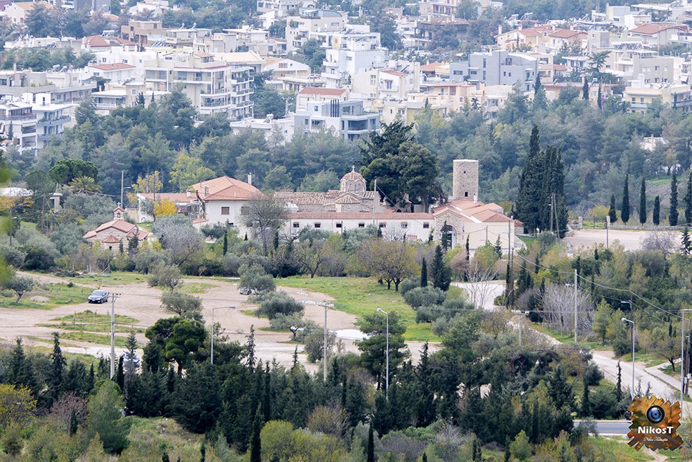Σε ένα πλάτωμα με εξαίρετη θέα προς το λεκανοπέδιο της Αθήνας, στους βόρειους πρόποδες του Υμηττού, βρίσκεται η Μονή του Αγίου Ιωάννη του Θεολόγου, που κάποτε θα ήταν περισσότερο απομονωμένη από την πόλη, αλλά σήμερα απέχει μόλις λίγα μέτρα από τα τελευταία σπίτια της περιοχής Παπάγου.