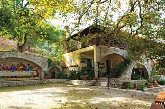 Λίγο χαμηλότερα από την ακρόπολη της αρχαίας Αλίφειρας, κτισμένη μέσα στον απόκρημνο βράχο επάνω από τον ποταμό Τρίτωνα, προβάλλει η εντυπωσιακή ιερά μονή Κοιμήσεως της Θεοτόκου, που είναι γνωστή ως Μονή Σεπετού.