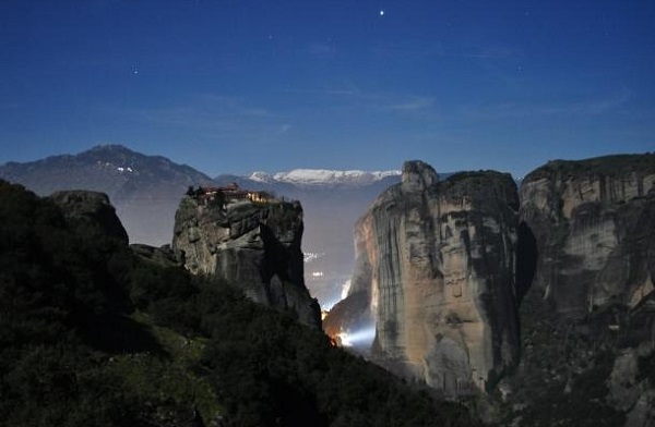 Τα Μετέωρα, που πήραν το όνομά τους από τον Όσιο Αθανάσιο τον Μετεωρίτη της Μονής του Μεγάλου Μετεώρου, αριθμούν σήμερα περισσότερους από χίλιους βράχους. Έως το 1500 μ.Χ. είχαν δημιουργηθεί 24 μοναστήρια, έπειτα από σκληρή εργασία των μοναχών μέρα και νύχτα. Μέσα μεταφοράς των υλικών κατασκευής σε αυτά ήταν οι πανύψηλες ξύλινες και ιδιαίτερα επικίνδυνες σκάλες αλλά και δίχτυα, που τα σήκωναν ειδικοί μηχανισμοί που είχαν στηθεί πάνω στους βράχους.