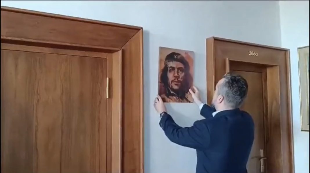 Η πρώτη του κίνηση, ήταν να πετάξει από το γραφείο τη σημαία της ΕΕ και μα αντικαταστήσει το πορτρέτο της προέδρου Zuzana Čaputova με αυτό του Τσε Γκεβάρα!