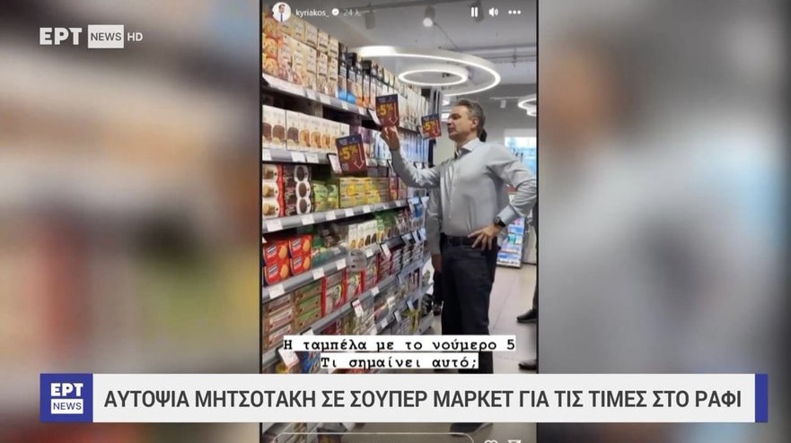 Αυτοψία Μητσοτακη σε σουπερ μαρκετ για να ελέγξει τις τιμές στα ράφια και μάλιστα ανέβασε και βιντεο στο instagram.