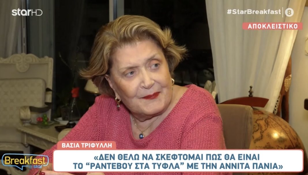 Η Βάσια Τριφύλλη έχει γράψει αδιαμφισβήτητα ιστορία με το τηλεπαιχνίδι «Ραντεβού στα τυφλά» και νιώθει πικραμένη που παρόλο που είχε σημειώσει μεγάλη επιτυχία η ίδια σταμάτησε να εμφανίζεται στην τηλεόραση καθώς σύμφωνα με εκείνη, δεν την θέλουν γιατί μεγάλωσε.