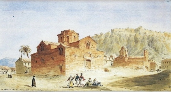 Φωτογραφία: Οι Εκκλησίες του Προφήτη Ηλία και των Ταξιαρχών, υδατογραφία James Skene. Από τις συλλογές του Εθνικού Ιστορικού Μουσείου