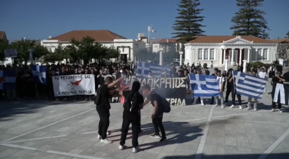Εκδήλωση για καταδίκη της ανακήρυξης του ψευδοκράτους πραγματοποίησαν μαθητές των σχολείων της Πάφου έξω από το Δημοτικό Μέγαρο της πόλης.