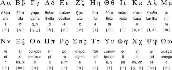 Ο επιστημονικός συμβολισμός για τα 24 γράμματα του ελληνικού αλφαβήτου