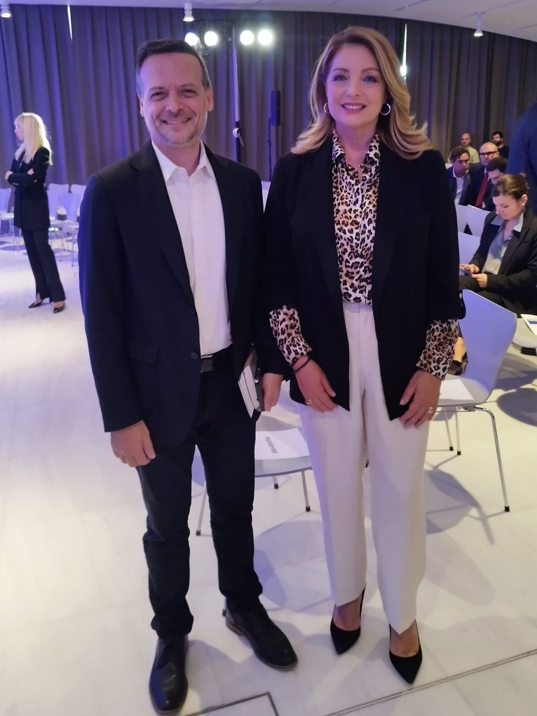 Εκεί, λοιπόν, ο Χάρης Δούκας δέχθηκε ευχές για τη γιορτή του, που ήταν στις 13 Νοεμβρίου, από την πρόεδρο του ΕΟΤ και πρωταγωνίστρια στη «Γη της Ελιάς» Αντζελα Γκερέκου. Με την πιο ωραία γυναίκα του συνεδρίου, όπως ακούστηκε να λέγεται από τους καλεσμένους, την Αντζελα Γκερέκου δηλαδή, φωτογραφήθηκε κιόλας ο νέος δήμαρχος Αθηναίων.