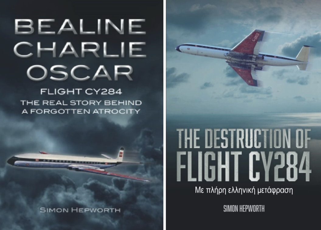 «Bealine Charlie Oscar, Πτήση 284 Η Πραγματική Ιστορία πίσω από μια Ξεχασμένη Θηριωδία» – με την αυτούσια φωτογραφία του αεροπλάνου. Το βιβλίο που χρησιμοποίησε και η Αστυνομική Αναθεώρηση.