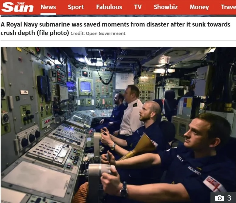 Ένα πυρηνικό υποβρύχιο κλάσης ‘Vanguard’ του βρετανικού Πολεμικού Ναυτικού, με 140 επιβαίνοντες, παραλίγο να βυθιστεί λόγω δυσλειτουργίας ενός από τους μετρητές βάθους του, αναφέρουν τα μέσα ενημέρωσης.