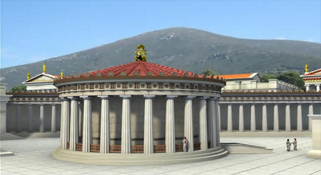 Στη φωτό: Η περίφημη Θόλος ή «Θύμελη» στο Ασκληπείο της Επιδαύρου – Το τελειότερο κυκλικό οικοδόμημα της Αρχαίας Ελληνικής Αρχιτεκτονικής – Ψηφιακή αναπαράσταση