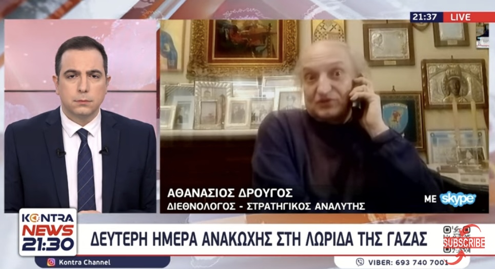 Ο Δρ. Αθανάσιος Δρούγος στρατιωτικός και διπλωματικός αναλυτής και ειδικός σε θέματα παγκόσμιας ασφάλεια, τρομοκρατίας και ασύμμετρων απειλών στο Kontra News 21:30 με τον Κωνσταντίνο Μαραβελίδη.
