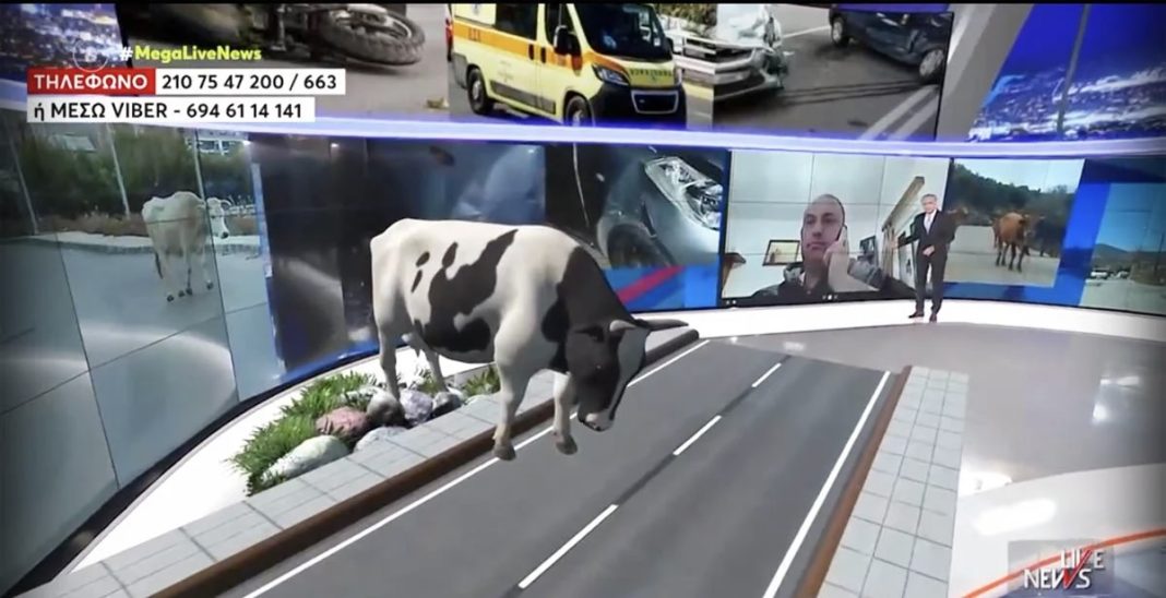 Σήμερα για παράδειγμα προκειμένου να δοθεί έμφαση σε τροχαία ατυχήματα με ζώα που γίνονται κυρίως στο επαρχιακό δίκτυο, βγήκε στο στούντιο παρέα με μια… αγελάδα!