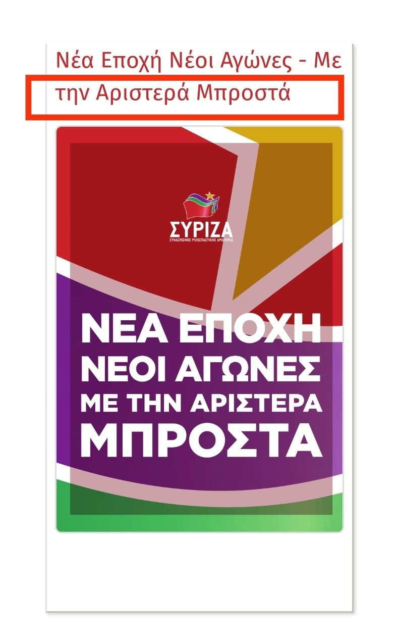 Δεν εξηγείται διαφορετικά το ότι το φημολογούμενο όνομα του κόμματος των 11… «Αριστερά Μπροστά»…είναι κλεμμένο από παλιότερη αφίσα του ΣΥΡΙΖΑ…