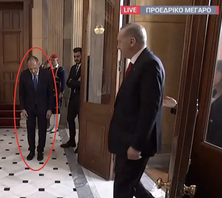 Ο κύριος Γεραπτριτης χαιρετάει την Προεδρο της Δημοκρατιας Κατερίνα Σακελλαροπούλου που μπαίνει ταυτόχρονα με τον Ταγίπ Ερντογάν, αλλά στο twitter έγινε χαμός καθως στο βιντεο δεν φαινεται να ισχυει κάτι τέτοιο.