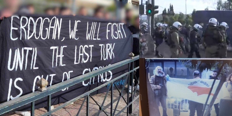 Όπως μεταδίδουν τα ελλαδικά Μέσα, οι Κύπριοι φοιτητές που βρίσκονταν στο ύψος της Ρηγίλλης φώναζαν συνθήματα κατά του Ερντογάν και κρατούσαν πανό.