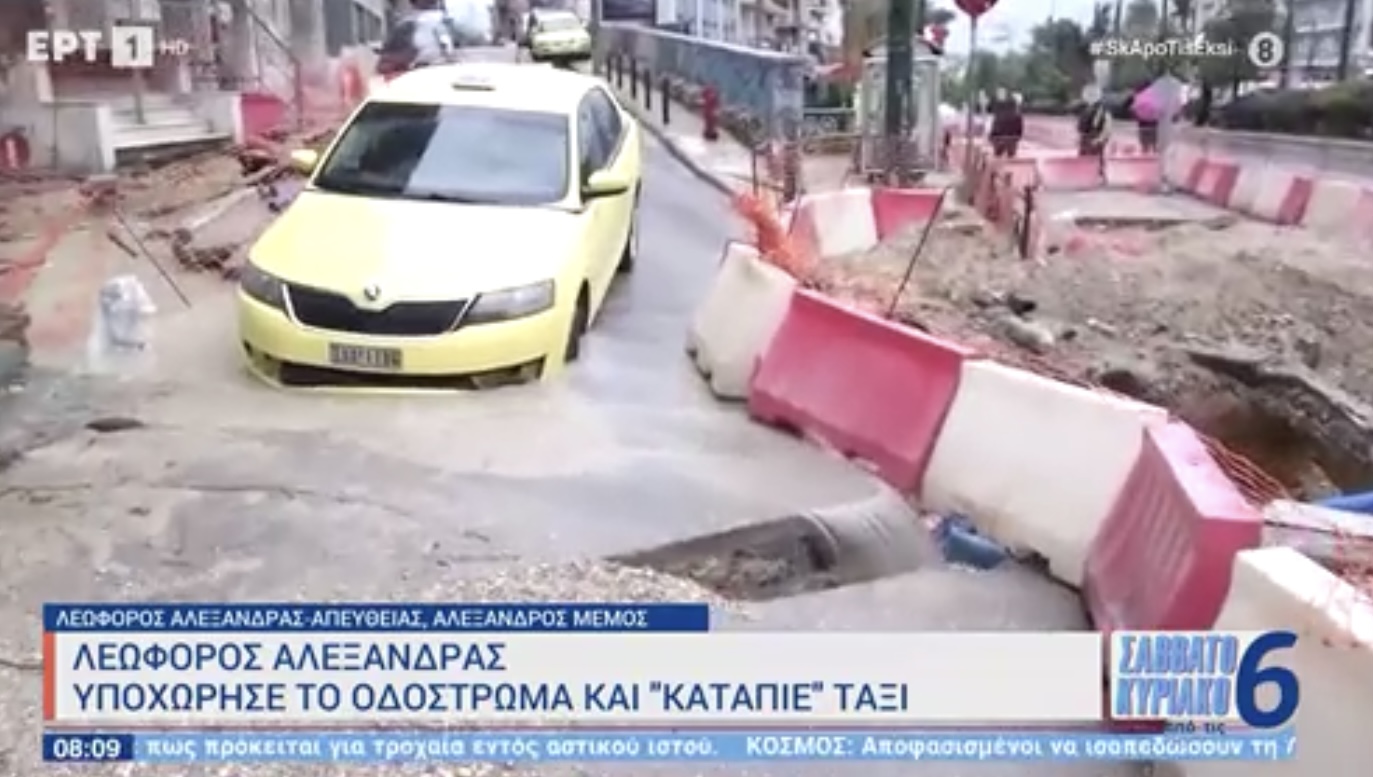 Τις προηγούμενες ώρες το κέντρο της Αθήνας είχε δεχθεί την μανία της κακοκαιρίας με ισχυρή καταιγίδα να πλήττει την πρωτεούσα. Πιθανότατα, η έντονη βροχόπτωση να διάβρωσε το δρόμο και να συνέβη το πρωτοφανές περιστατικό.