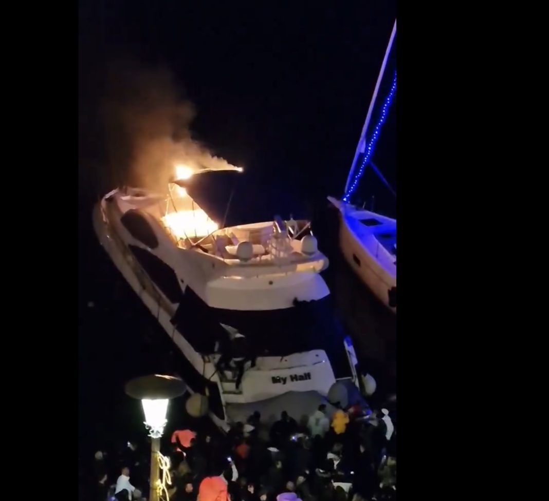 Σκάφος, που βρισκόταν στο λιμάνι του Βόλου πήρε φωτιά από τα φαναράκια που έπεσαν σε αυτό κατά την βραδιά των φαναριών στην παραλία της πόλης.