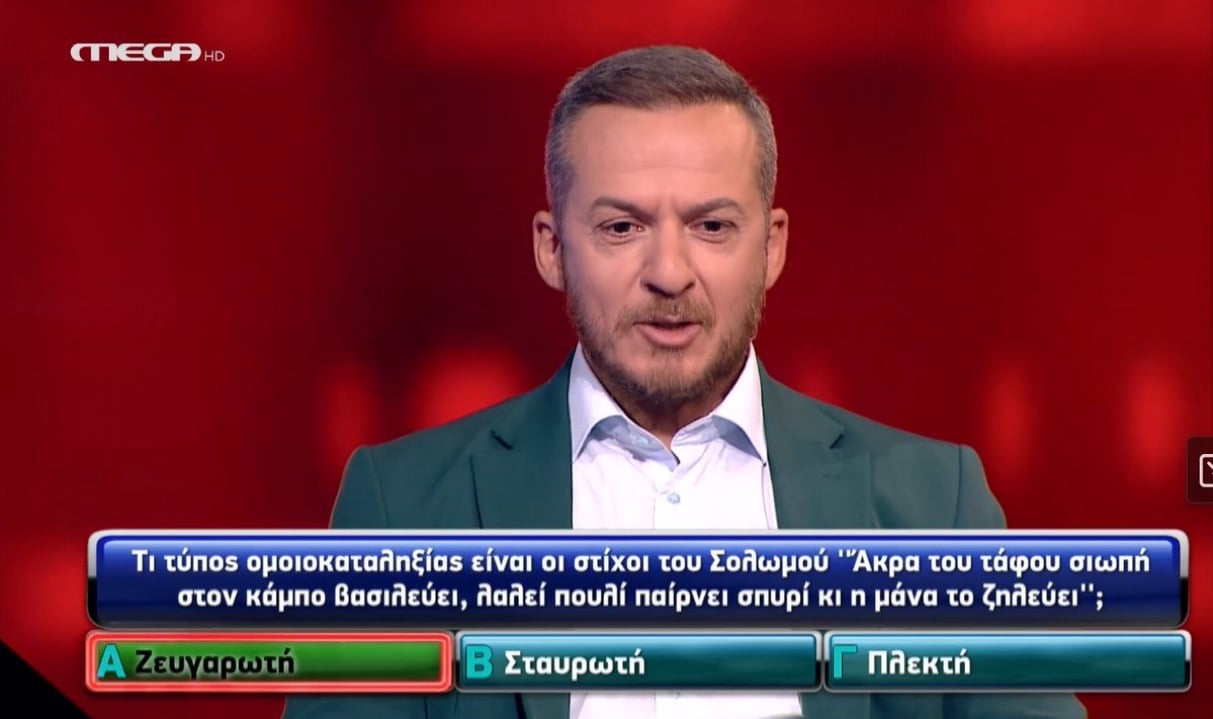 Δόθηκε για σωστή απάντηση το Α (όπως είχε απαντήσει η παίκτρια αλλά και ο chaser) ενώ με το λεξικό το σωστό είναι το Γ: