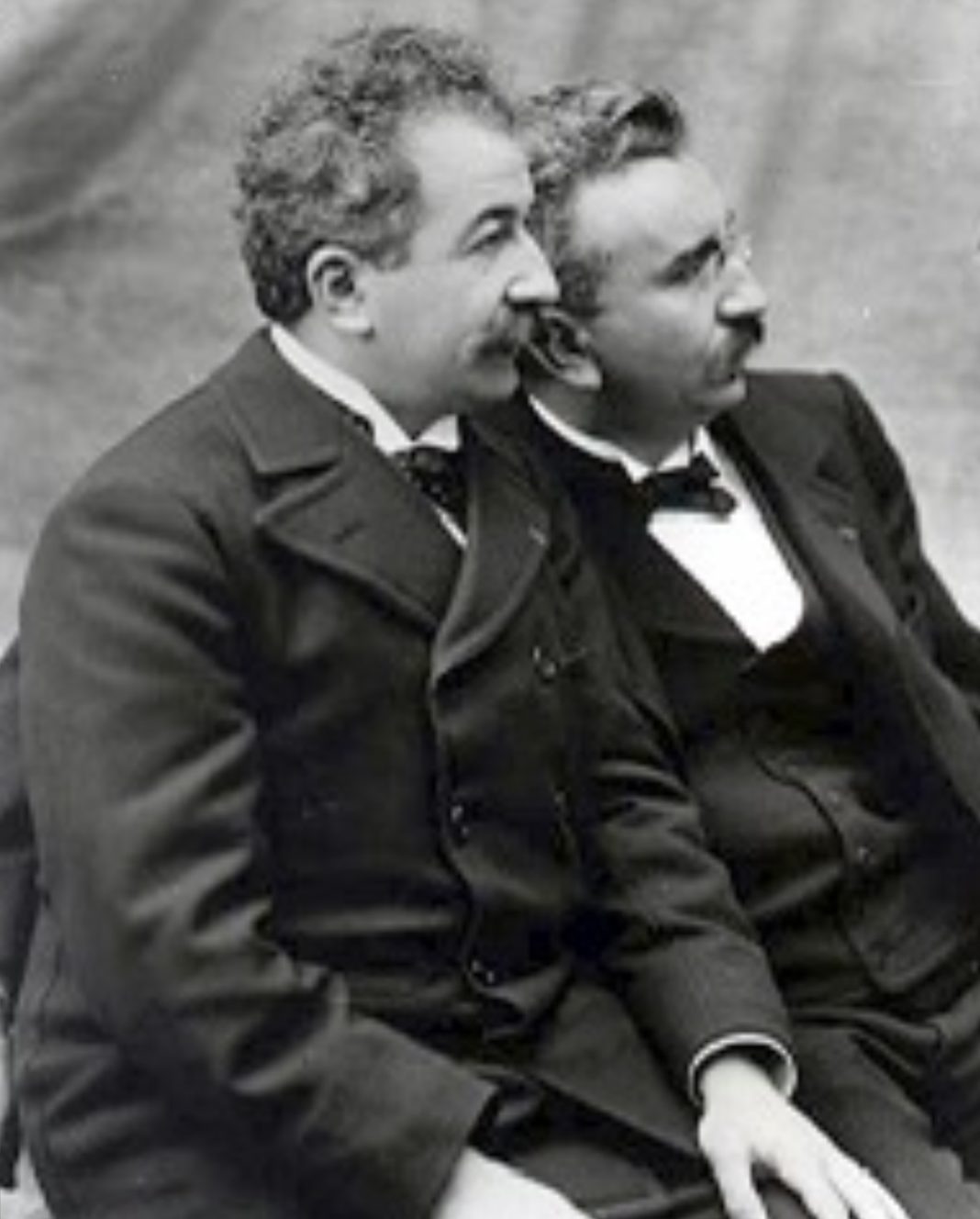 Στις 28 Δεκεμβρίου του 1895, πραγματοποίησαν την πρώτη δημόσια προβολή ταινιών, επί πληρωμής, στο Παρίσι, ενώ τον επόμενο χρόνο, προώθησαν την εφεύρεση τους στο Λονδίνο και στη Νέα Υόρκη, όπου έτυχαν θερμής υποδοχής. Οι ίδιοι θεώρησαν πως ο κινηματογράφος ήταν ήσσονος σημασίας και πούλησαν την εφεύρεσή τους στον Ζωρζ Μελιέ.