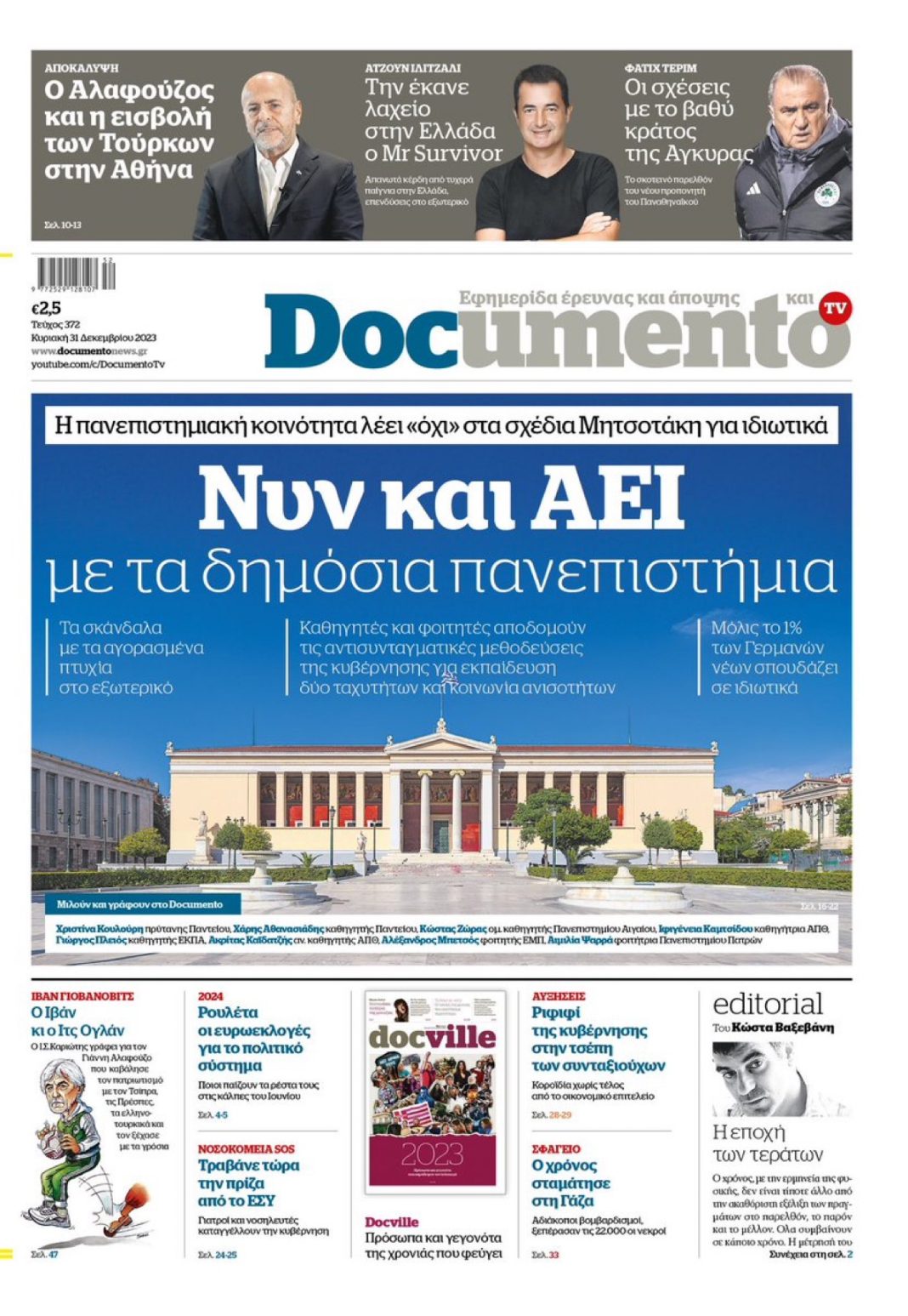 Αποκαλυπτικό και αυτή την Κυριακή το Documento του Κωστα Βαξεβάνη.