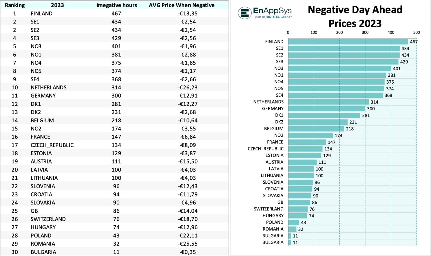 Στη συνέχεια, τον Νοέμβριο είδαμε το σφάλμα προσφοράς στη Φινλανδία, αναγκάζοντας τη φινλανδική τιμή να εκκαθαριστεί στα €-500. Αυτό ήταν ένα περιστατικό, αλλά κοιτάζοντας πίσω στη χρονιά, η Φινλανδία είδε έναν εξαιρετικά υψηλό αριθμό αρνητικών τιμών, τον υψηλότερο αριθμό στην Ευρώπη. Αυτό προκλήθηκε λόγω έλλειψης ευελιξίας στο σύστημα μετά την έναρξη λειτουργίας του πυρηνικού σταθμού Okiluouto 3. Εάν φυσάει και η υδροηλεκτρική ροή του ποταμού είναι υψηλή, το πυρηνικό εργοστάσιο περιορίζεται, προκαλώντας αρνητικές τιμές.