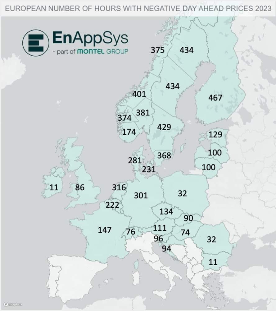 - – Τον αριθμό των ωρών με αρνητικές τιμές ανά χώρα
