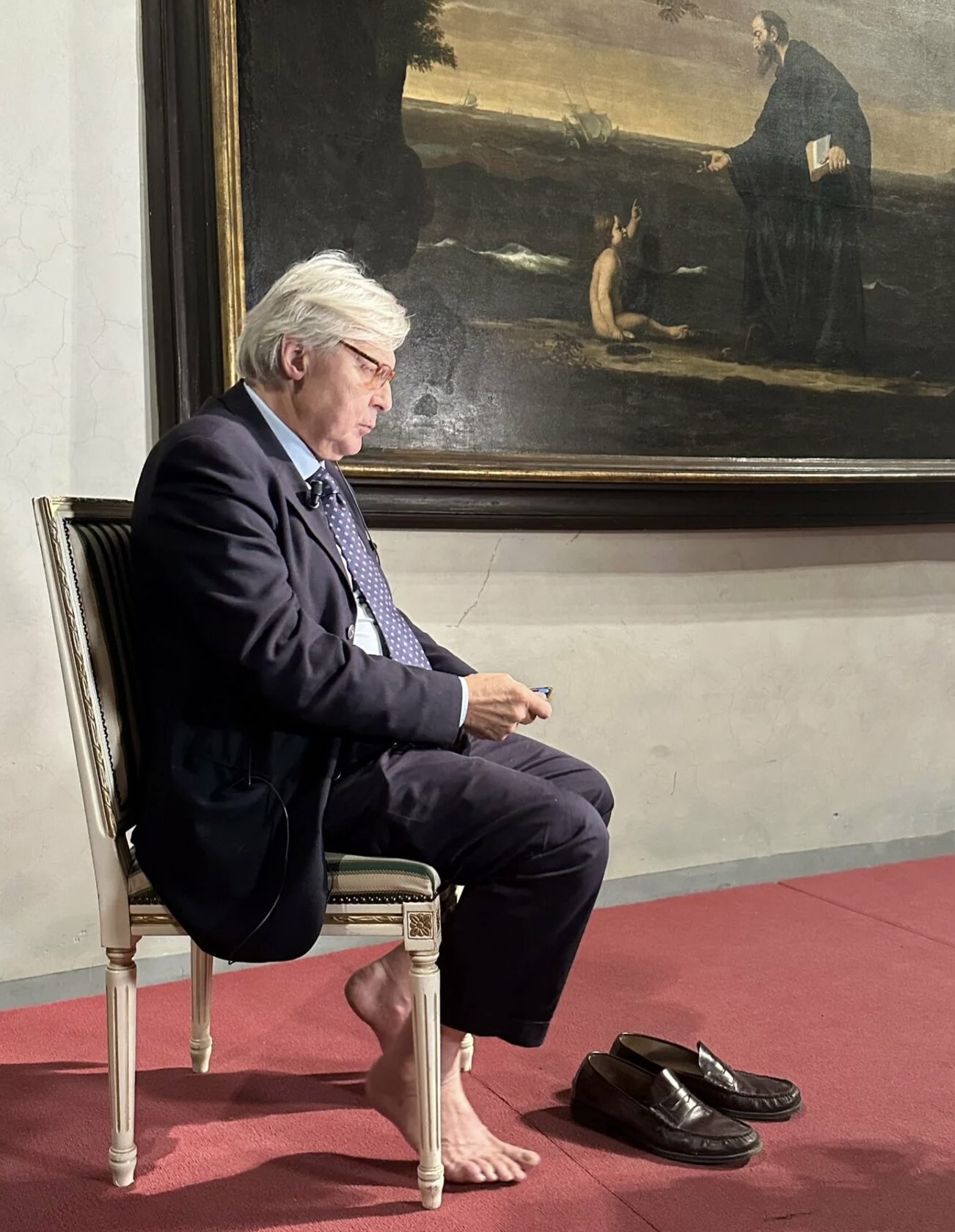 Η Εισαγγελία ερευνά τον Sgarbi για φερόμενο ξέπλυμα κλεμμένης τέχνηςμετά το σχετικό ρεπορτάζ του Report, ερευνητική εκπομπή του δημόσιου ραδιοτηλεοπτικού σταθμού Rai. Επιπλέον, κατηγορεἰται ότι αλλοίωσε τον πίνακα ζωγραφικής προκειμένου να συγκαλύψει την προέλευσή του. Ο υφυπουργός αρνείται κάθε εμπλοκή.