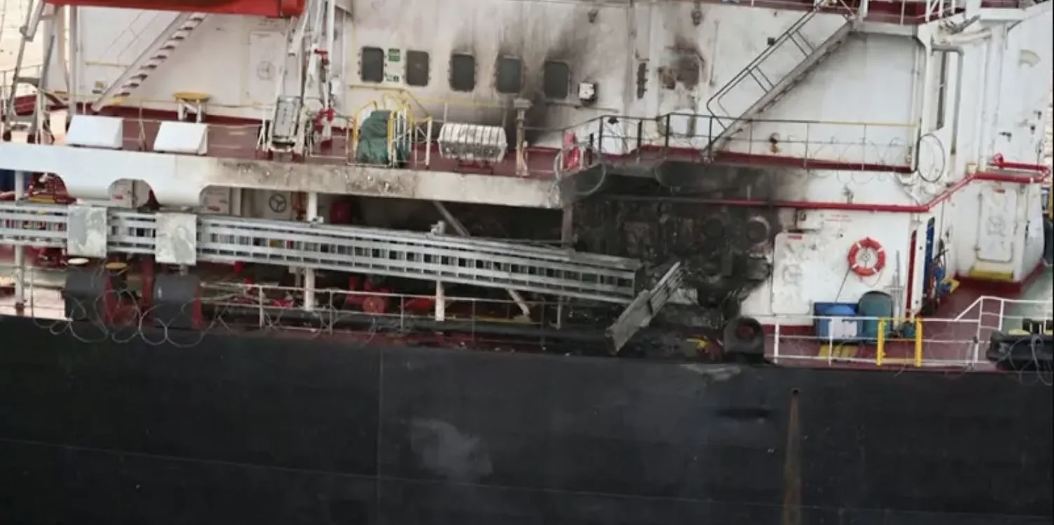 Το πλαϊνό μέρος στο χώρο ενδιαίτησης του πλοίου φάνηκε καμένο, αφού χτυπήθηκε από drone που εκτοξεύτηκε από το έδαφος της Υεμένης.