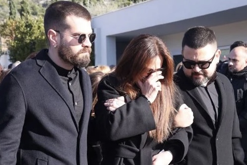 Στην κηδεία έδωσαν το παρών και η χήρα του Βασίλη Καρρά, Χριστίνα με την κόρη της Ειρήνη.