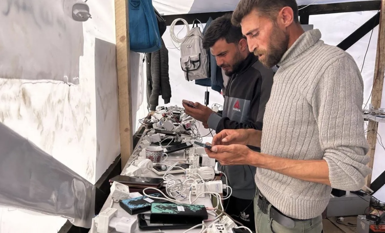 Ο χώρος που δίνεται η δυνατότητα οι Παλαιστίνιοι να φορτίσουν τα κινητά τους τηλέφωνα