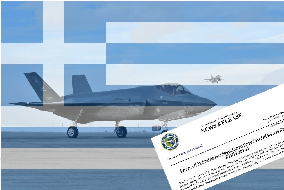 Το Στέιτ Ντιπάρτμεντ έχει αποφασίσει να εγκρίνει πιθανή στρατιωτική πώληση στην κυβέρνηση της Ελλάδας αεροσκαφών F-35 Joint Strike Fighter συμβατικής απογείωσης και προσγείωσης (CTOL) και σχετικού εξοπλισμού για εκτιμώμενο κόστος 8,6 $ δισεκατομμύριο.
