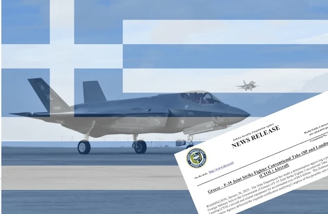 «Το Στέιτ Ντιπάρτμεντ αποφάσισε να εγκρίνει μια πιθανή στρατιωτική πώληση στην κυβέρνηση της Ελλάδας, 40 F-35 Joint Strike Fighter συμβατικής απογείωσης και προσγείωσης (CTOL) και σχετικού εξοπλισμού για εκτιμώμενο κόστος 8,6 δισεκατομμυρίων δολαρίων.