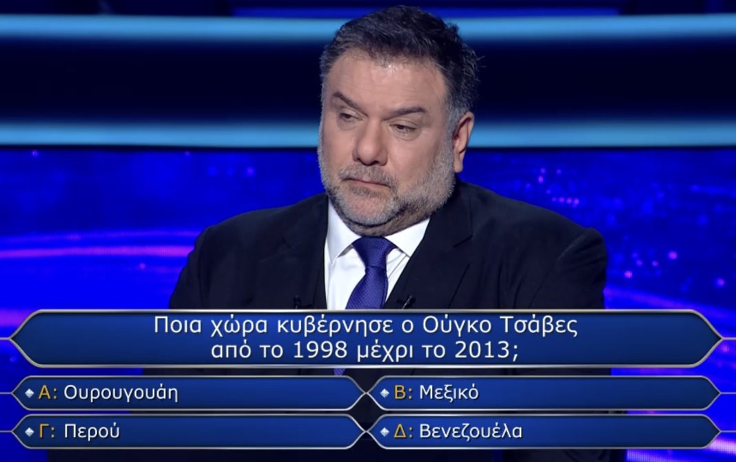 Σάλος στο Ποιος θέλει να γίνει εκατομμυριούχος του Γρηγόρη Αρναούτογλου με παίκτη που ζήτησε βοήθεια για να βρει σε ποια χώρα ήταν πρόεδρος ο Τσαβες