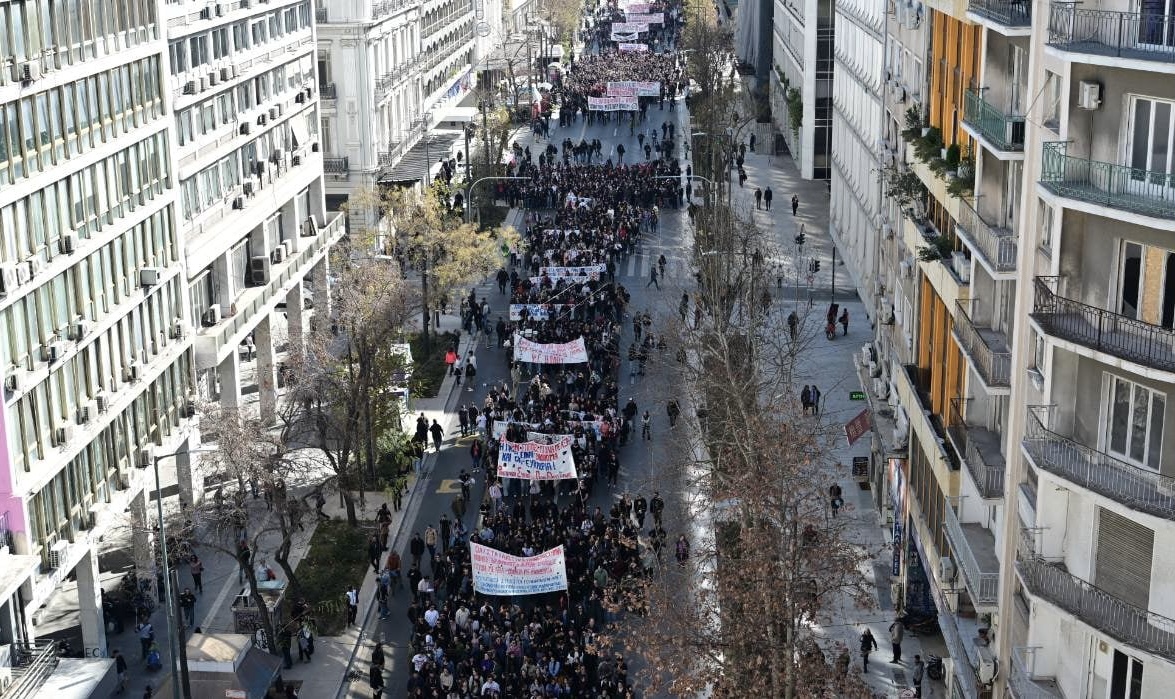 Περισσότεροι από 25.000 διαδηλωτές γέμισαν τους δρόμους της πρωτεύουσας. Η μεγάλη πορεία ξεκίνησε λίγο μετά την 1μ.μ. από τα Προπύλαια. Στην κεφαλή είναι ο Φοιτητικός Σύλλογος της Νομικής ΔΠΘ «Κώστας Βάρναλης», που δέχτηκε επίπθεση από τα ΜΑΤ.