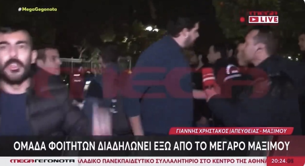 Σύμφωνα με τα όσα μεταδίδει το MEGA, λίγο μετά τις 8.00 το βράδυ και παρά την παρουσία ισχυρών αστυνομικών δυνάμεων στην Ηρώδου Αττικού, οι φοιτητές κατάφεραν να φτάσουν ακριβώς έξω από το μέγαρο, όπου φώναξαν συνθήματα κατά της κυβέρνησης Μητσοτάκη, ενώ προσπάθησαν και να ανοίξουν πανό.