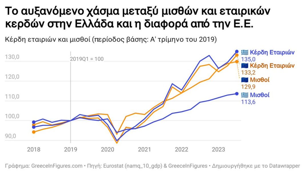 Σύγκριση αύξησης εταιρικών κερδών με μισθούς, ετών 2020 -2023