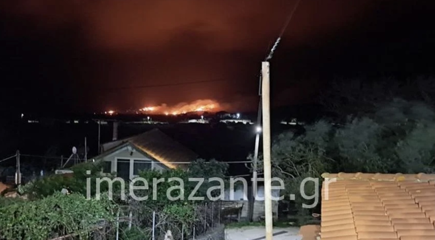 Δύσκολη αναμένεται να είναι η νύχτα στη Ζάκυνθο καθώς εξακολουθεί να μαίνεται η μεγάλη πυρκαγιά που ξέσπασε το απόγευμα του Σαββάτου στην περιοχή Εξωχώρα καθώς στο σημείο πνέουν ισχυροί άνεμοι.