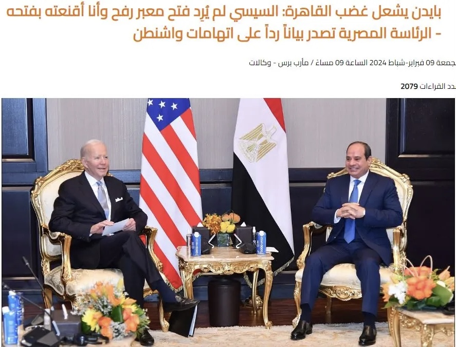 «Ο Μπάιντεν πυροδοτεί την οργή του Καΐρου: Ο Σίσι δεν ήθελε να ανοίξει το πέρασμα της Ράφα και τον έπεισα να το ανοίξει – Η αιγυπτιακή προεδρία εκδίδει δήλωση ως απάντηση στις κατηγορίες της Ουάσιγκτον»