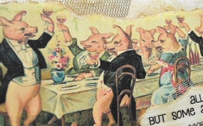 Μάλιστα δε, το ίδιο ζήτημα αναδεικνύεται και στο μυθιστόρημα του ίδιου αυτού συγγραφέα, στη «Φάρμα των Ζώων».