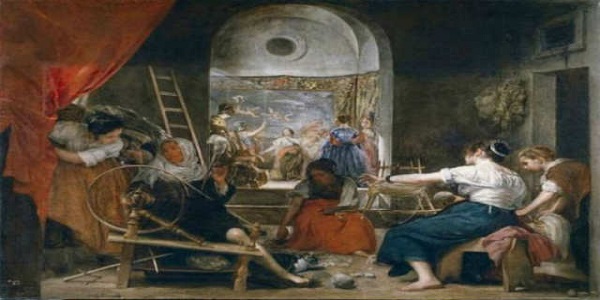 Η Αράχνη αντίθετα με ιδιαίτερο θράσος απεικόνισε τις ερωτικές ατασθαλίες των θεών που αποπλανούσαν θνητές, αφού πρώτα εξαπατούσαν τα υποψήφια θύματά τους. Η Αθηνά εξοργίστηκε με την έπαρση της υφάντρας και έσκισε το υφαντό της. Όταν όμως είδε το υφαντό της, θαύμασε την τεχνική και το ταλέντο της Αράχνης.