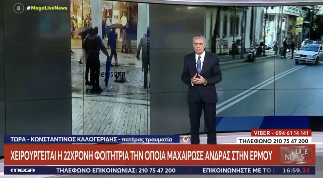 Σύμφωνα με τα νεότερα στοιχεία, ο δράστης της επίθεσης με μαχαιρι στην Ερμού είναι ένας 42χρονος με καταγωγή από το Ιράκ και το θύμα μια 22χρονη η οποία είναι φοιτήτρια και παράλληλα εργάζεται ως πωλήτρια σε μαγαζί στον συγκεκριμένο εμπορικό δρόμο.