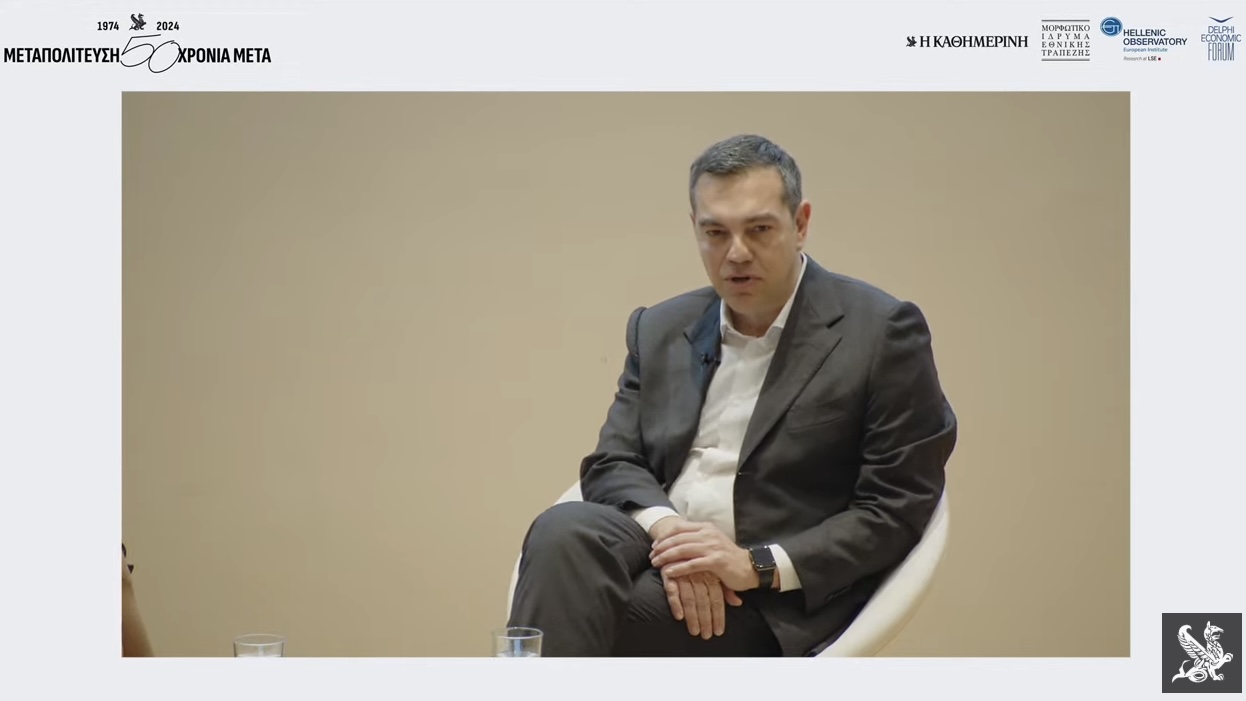 Στην διακυβέρνηση του ΣΥΡΙΖΑ και όχι μόνο αναφέρθηκε ο Αλέξης Τσίπρας σε συζήτηση με τη δημοσιογράφο Ξένια Κουναλάκη στο πλαίσιο του συνεδρίου «Μεταπολίτευση: 50 χρόνια μετά» που διοργανώνει η εφημερίδα «Καθημερινή» με το Μορφωτικό Ίδρυμα Εθνικής Τραπέζης (ΜΙΕΤ), το Φόρουμ των Δελφών και το Ελληνικό Παρατηρητήριο του London School of Economics (LSE).