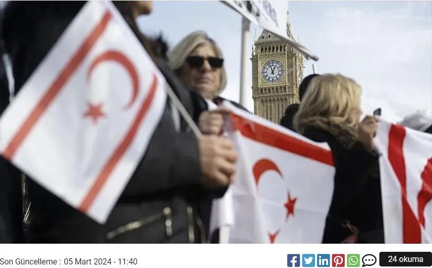 Οι Τουρκοκύπριοι, που συγκεντρώθηκαν στην πλατεία μπροστά από το βρετανικό κοινοβούλιο υπό την ηγεσία του Βρετανικού Συμβουλίου Τουρκοκυπριακών Ενώσεων (BTCA) και της μη κυβερνητικής οργάνωσης που ονομάζεται «Embargoed», ζήτησαν την ακύρωση της απόφασης του 1964, του Συμβουλίου Ασφαλείας του ΟΗΕ, για την αποστολή ειρηνευτικών δυνάμεων Κύπρο με αφορμή την 60η επέτειο της αποστολής αυτής, αναφέρουν σήμερα τουρκικά δημοσιεύματα.