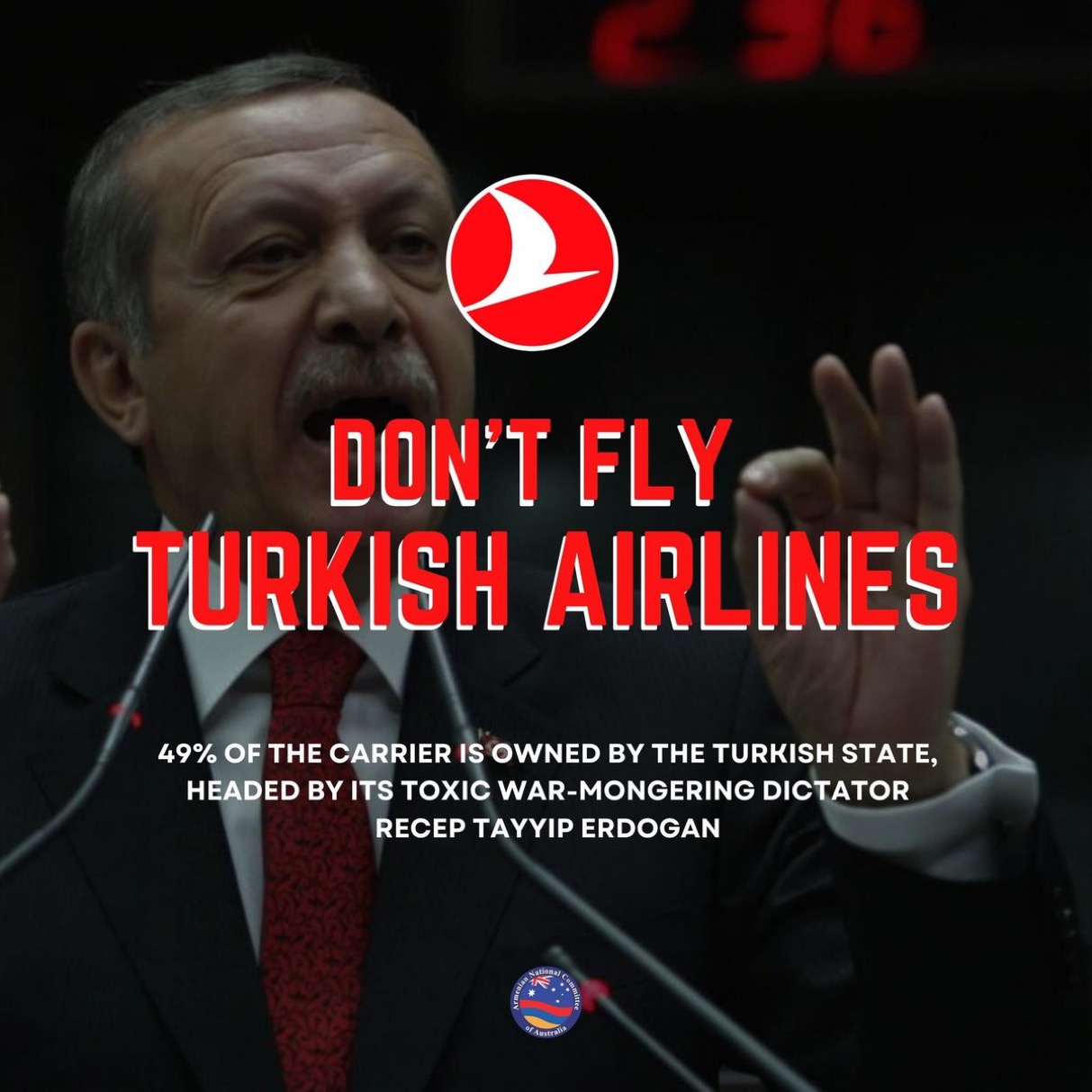 Το 49,12% του τουρκικού αερομεταφορέα ανήκει στο τουρκικό κράτος με επικεφαλής τον τοξικό πολεμοχαρή Ερντογάν.