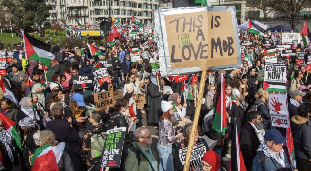 Επί μια εβδομάδα ο φιλο – παλαιστινιακός όχλος πολιορκούσε το Βρετανικό Κοινοβούλιο γράφει ο Φρανκ Χάβιλαντ στο περιοδικό Νέος Συντηρητικός του Ηνωμένου Βασιλείου. To Μπιγκ Μπεν φωτίστηκε από τους πυρσούς που κράδαιναν διαδηλωτές και ζητούσαν γενοκτονία των Εβραίων, ενώ οι Βρετανοί βουλευτές άκουγαν απειλές για τη ζωή τους αν ψήφιζαν με λάθος τρόπο, όπως τουλάχιστον φώναζαν κάποιοι από τους διαδηλωτές, για ένα πόλεμο που λαμβάνει χώρα χιλιάδες χιλιόμετρα μακρυά από τη Βρετανία.