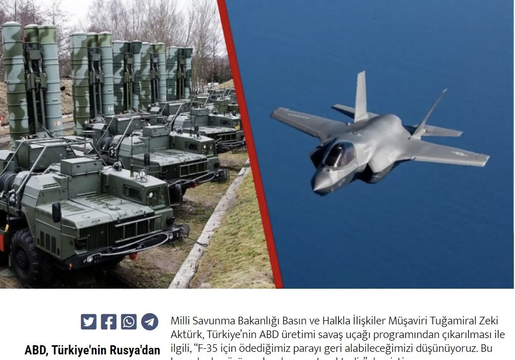 Ο υποναύαρχος Ζεκί Άκτουρκ, Σύμβουλος Τύπου και Δημοσίων Σχέσεων του Υπουργείου Εθνικής Άμυνας, σχετικά με τον αποκλεισμό της Τουρκίας από το πρόγραμμα μαχητικών αεροσκαφών αμερικανικής παραγωγής, δήλωσε: